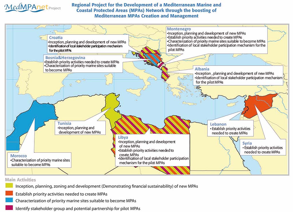 - Demonstration projects on MPAs creation and financial analysis and sustainability mechanism in Albania, Croatia, Libya, Tunisia and Montenegro,