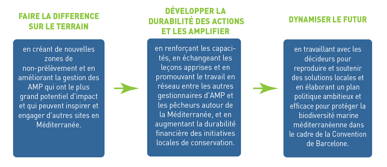 L’objectif de ce projet est d’apporter des solutions pour améliorer la gestion et la gouvernance des aires marines protégées et renforcer la protection de certaines zones en Méditerranée.