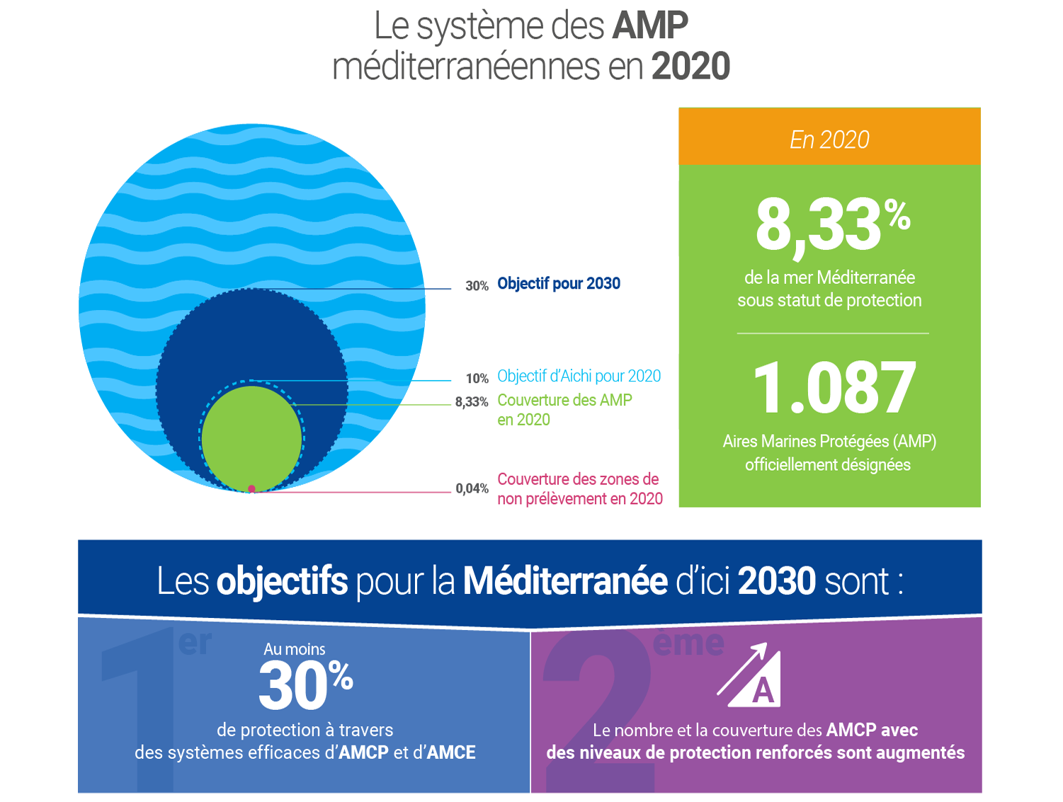 Afin de traduire le Plan Stratégique de la CDB pour la biodiversité 2011-2020, et en particulier son Objectif 11 pour la Biodiversité d’Aichi au niveau méditerranéen, en 2016, les Parties Contractantes ont adopté, au cours de leur COP 16, une Feuille de Route pour un Réseau Cohérent et Complet d’Aires Marines Protégées (AMP) Bien Gérées afin d’atteindre l’Objectif 11 d’Aichi en Méditerranée.